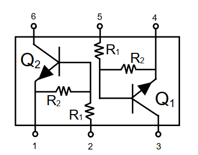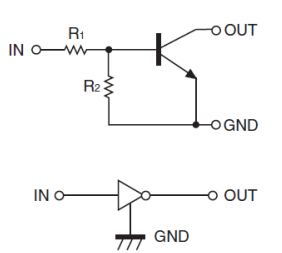 Type | Datasheet | Circuit | Marking | Polarity | PC | lo | VCC | Gi | Vo(on) | R1 | R2 | Ft | Package |